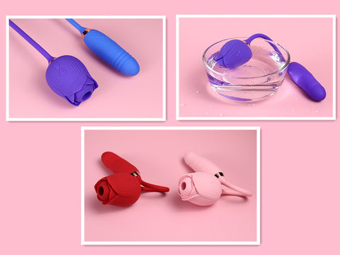 -- Double-headed design. One head include suction with flower, just like regular rose. The other have a stronger vibration of dildo. This up & down rose vibrator is designed for dual pleasure. It comes with sucker and eggs that can stimulate the nipples, clitoris, vaginac, anus, or any sensitive points. The rose sex toys will definitely make you reach a endless interesting orgasm.