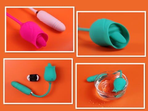 The vibrator is in the shape of a rose and the endurance part of the head is designed as a tongue-licking massager. A moderately soft tongue will lick your nipples and other sensitive areas, from mild to wild, giving you itching and charming moist pleasure.