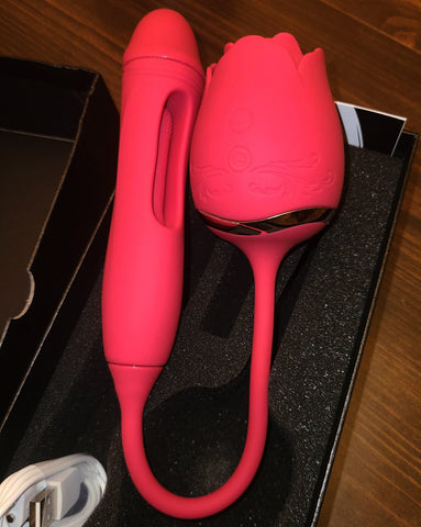 I also like the fact that I will never run out of batteries with it because it is USB chargeable too. Definitely worth the purchase and I’m super happy with my new toy. :-)--------------------DBReviewed in the United States on September 5, 2023I bought my wife the sucking Rose vibrator as a surprise. We received it about 2 weeks ago. It arrived in a sturdy black box that was completely discreet. Upon opening it I was pleasantly surprised at the attention to detail. It actually looks like a rose and has a pretty design on it. It feels very sturdy in your hands unlike some other cheap toys. It has a soft silicone feel to it not hard plastic. The rows and the dildo are controlled separately so you can choose a specific vibration pattern for each end of the toy which is cool. Another nice feature is the magnetic charger. Although other toys say they are waterproof I have seen some leak where the plug actually inserts into the toy. With the magnetic charger I have full confidence that this will be waterproof and not get ruined when we wash it.