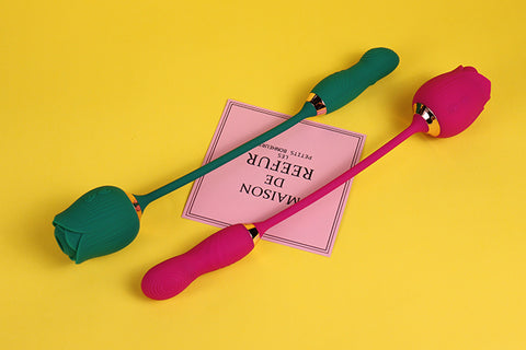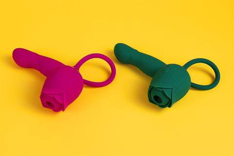 The Rose dildo Pro4 is a striking and versatile toy from Aimitoy. They took the Rose Toy Vibrator, a clitoral suction toy, and expanded its capabilities by adding a G-spot shaft.