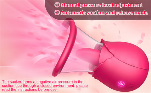 - Rose Sucker with Suction and Deflation Function - This women's vacuum pump device is used for female private parts, it has manual suction and deflation function, so you can adjust the vacuum pressure level according to your needs. What's more, You can also choose automatic suction and release mode combined with tongue licking function, to get the job done with ease.