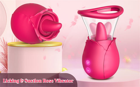 Rose Sex Toy Vibrator for Women - Brafzid 2 in 1 Licking & Sucking Rose Vibrator Stimulator Clits Nipples Vacuum Pump Sucker Massager with Suction Cup, 7 Licking Modes Adult Sex Toys