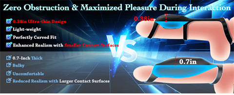 - [Zero Obstruction & Maximized Pleasure During Interaction] This penis sleeve, featuring an ultra-thin 0.38-inch curved cover and 3 elastic rings, seamlessly wraps around your shaft, remaining securely in place even during thrusting. With its scientifically designed silicone contact surfaces, you can fully immerse yourself in the pleasures of penis stimulation, not just the sensation of the silicones. All of this is designed to ensure comfort, suitability, and to maximize your pleasure.