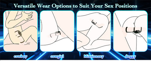 - [Versatile Wear Options to Suit Your Sex Positions] Regardless of your preferred sexual position, the penis ring can be adjusted to meet your needs. It precisely stimulates your sensitive areas, leading to intense vaginal and anal climaxes for both you and your partner. Thanks to its straightforward design, our product offers flexibility and easy usage in all sexual positions, making it a perfect tool for enhancing your sexual experiences.