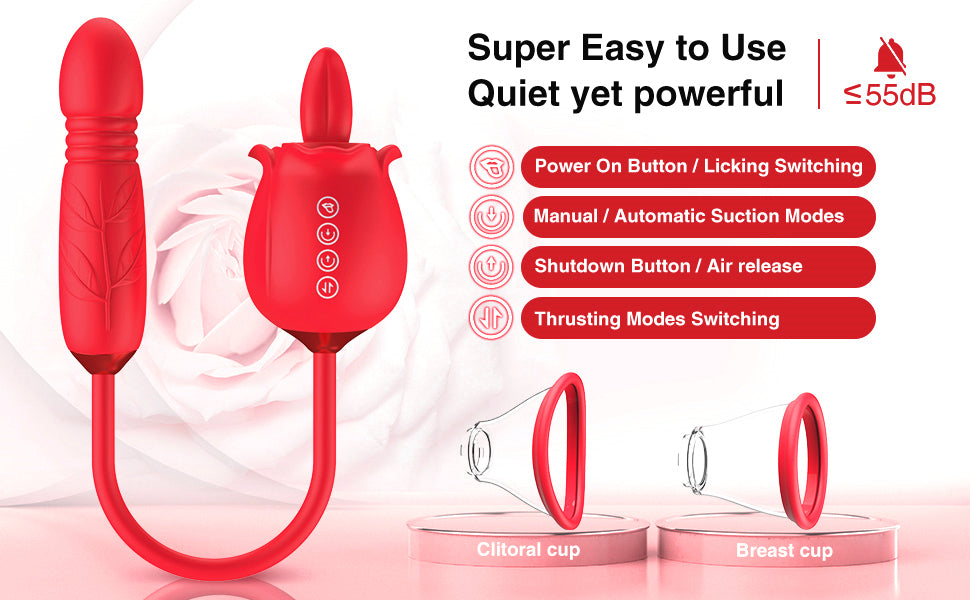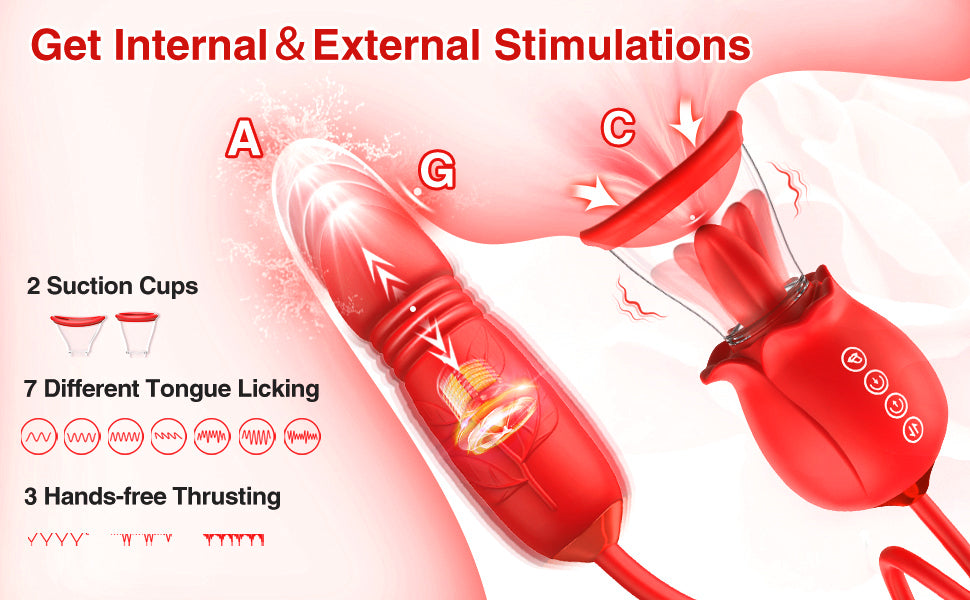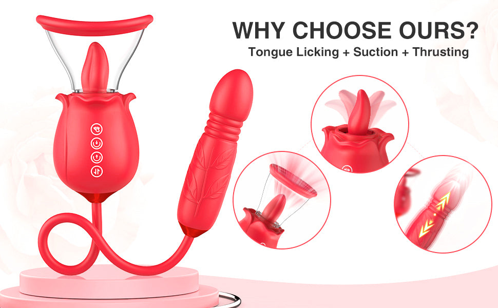 - 【3IN1 Upgrade Rose Sex Toy for Dual Stimulation】When most customers feel like their traditional rose sex stimulator for women only can offer single stimulation and didn't do much for them, we specially design this rose toy for woman with the combination of ‘tongue licking+suction+thrusting' to offer you dual stimulation. Both parts has multiple speeds and settings that can be controlled easily, you can use one part of the rose vibritator by itself if you don't want to use them at the same time