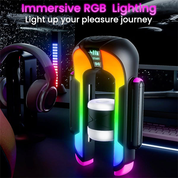 - Ergonomic Grip with Dynamic RGB Lighting: Built with a comfortable grip that stays steady during long sessions, the design includes immersive RGB lighting that shifts through vibrant colors. The combination of ergonomic handling and tech-inspired lighting makes this male sex toy stand out from standard pocket pussies and blowjob machines