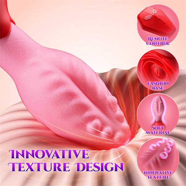 - Unique rose-petal base and realistic shape, this anal plug vibrator is made from soft and friendly material for a comfortable touch. The vibrating butt plug for women textured ridges and raised patterns create layered sensations, making every use feel new and exciting. The tapered tip ensures easier insertion, while the artistic rose design adds both elegance and a playful visual appeal. More than just a anal toy, it inspires imagination and enhances sensory experiences with its creative look and feel