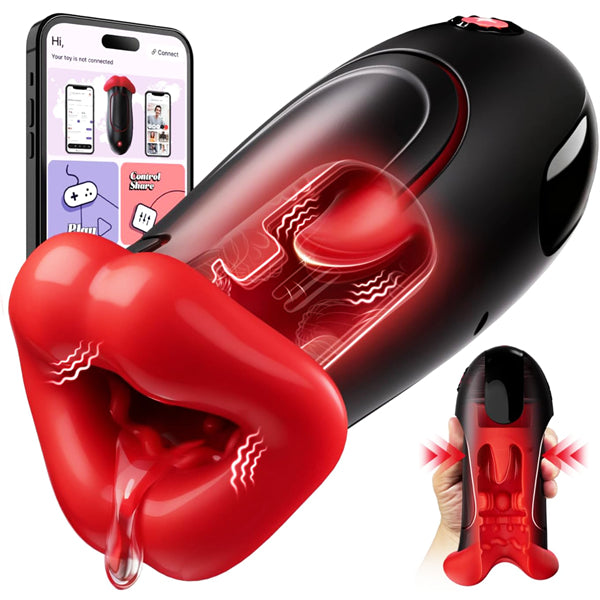 - 【Lip & Tongue Shaped Male Masturbator】The toy features sexy soft red lips, vibrating tongue. It has 10 levels of tongue & internal dual vibration modes, supports App control (supporting remote interaction between couples) and one-touch control on the device itself. In addition, you can take control of your pleasure with the squeezable shell.