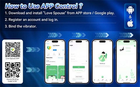 - APP Remote Controlled Vibrator, No More Space Limitations - This couple's vibrator connects to an app via Bluetooth, compatible with iOS and Android. The 7 ways to play on the "Love Spouse" app allow you to customize vibration patterns, enabling you to achieve unexpected and exciting trembling climax. (Both partners need to bind the sex machine and add each other as friends in order to remotely activate the interactive mode and control each other's toys)
