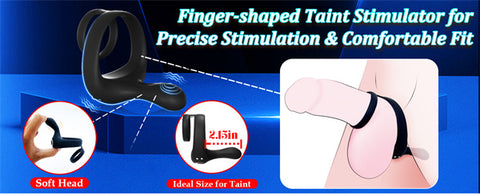 - [3 In 1 Vibrating Cock Ring + Ball Stimulator + Taint Stimulator for Mind-blowing Full-body Climaxes] The cock ring provides a snug fit around the base of your cock & balls, enhancing your erection and prolonging your pleasure. The pointed tip delivers targeted stimulation to your taint, adding an extra layer of ecstasy to your experience. The triple tease of this toy is designed to offer tantalization and stimulation during solo masturbation or a partnered ride!