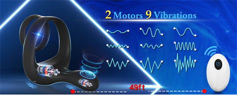 Dual Motors 9 Vibrations Remote Cock Ring