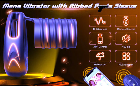Vibrating Cock Ring Couple Sex Toys, Mens Vibrator with Ribbed Penis Sleeve Adult Sex Toys, APP Remote Control Penis Ring Vibrator Sex Toys for Men,10X Vibrating Penis Ring Male Sex Toys