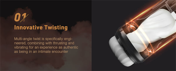 - Exclusive Twisting Function: This stroker has a distinctive twisting function that simulates real sexual movements, Unlike regular rotation, this multi-angle twist is specifically engineered to simulate authentic penetration, combining with the thrusting for an unparalleled lifelike experience.