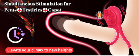 - 【Sync Blended Penis, Testicle & C Spot Stimulus】- Experience unmatched pleasure with simultaneous C spot vibration, perineum & testicle massage, and penis stimulation. One ring for shaft erection, another for ball constriction. The rose-shaped clitoris vibrator unleashes powerful vibrations when you tightly grind it against her clit. Experience an explosion of synchronized pleasure as all erogenous zones are stimulated simultaneously, driving you both to the brink of ecstasy.