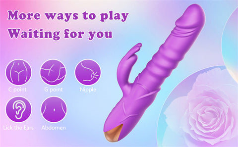 - Powerful Vibration and Thrusting - 3 in 1 thrusting vibrator with 10 powerful vibrations and 3 thrusting modes.While being strongly impacted, the vibrating rabbit will gently stroke the clitoris.The rose toy is equipped with a new generation motor, which is more powerful than other vibrators.
