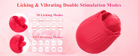 - Adorable Rose Toy Tongue Licking Vibrator for Women - The vibrator is modeled on a rose, gorgeous rose design, rose toy has tongue licking and vibration function, flexible tongue licking and powerful vibration stimulate clitoris, nipples, breasts.
