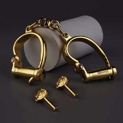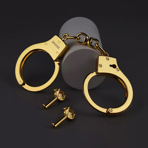 The horseshoe-shaped design, the shape of the hand, the sense of restraint, the handcuffs made of zinc alloy, full of texture, the sound of the buckle teeth is clear, a must for cosplay players, golden electroplating, elegant and luxurious, with safety buckle, can be opened without a key, safe to play.(This handcuffs are only used or played as a sex BDSM handcuff toys.)