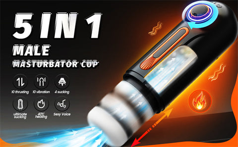 - 【5-in-1 Upgraded Automatic Male Masturbator】In order to meet users' needs, we specially designed the masturbation cup with 4 functions of free variable speed thrusting, 10-frequency vibration, 4-frequency sucking and 40 degree heating, which can be used alone or freely combined with 4 functions to provide you more fun to explore. To give you a more soulful experience, male stroker is paired with moans of a sexy hottie, which will make you as entwined as the scene and push you to the climax. "