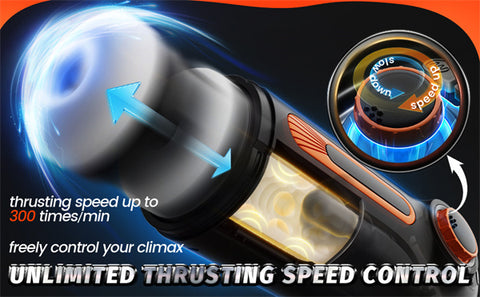 - 【Unlimited Thrusting Speed Control & One-Click Climax Male Sex Toy】Thrusting male masturbator is equipped with free telescopic variable speed mode, from gentle warm-up and foreplay teasing in low speed to wild rushes and spasms out of control in high speed, you can easily go to switch speed at will by rotating button to give you a superb sense of control over sex. Male masturbator cup's one-click orgasm mode will reach the strongest mode to fulfill your expectations and give you much pleasure